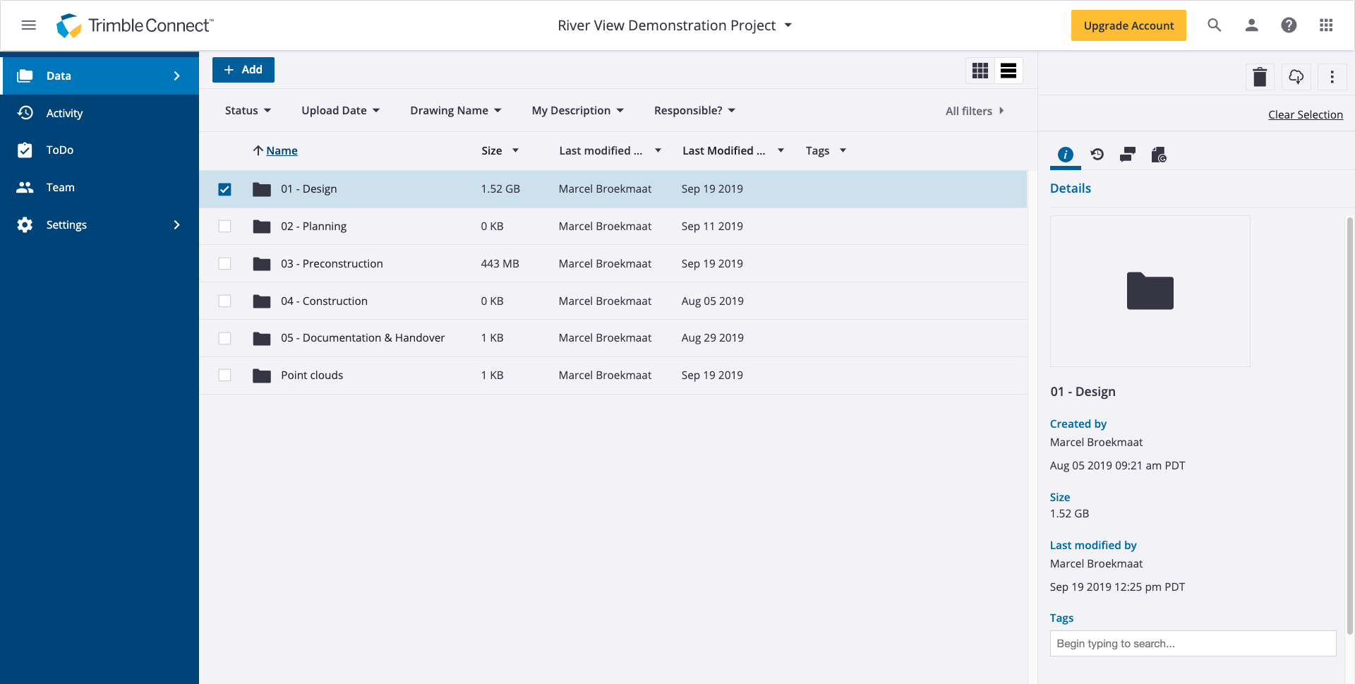Improper dissemination of construction documents can often result in the use of outdated versions, incomplete data sets, and misinterpretation. Trimble Connect provides a single source of truth - enabling you to eliminate rework and costly supply chain issues by storing, organizing and sharing your data in a secure, cloud-based solution.